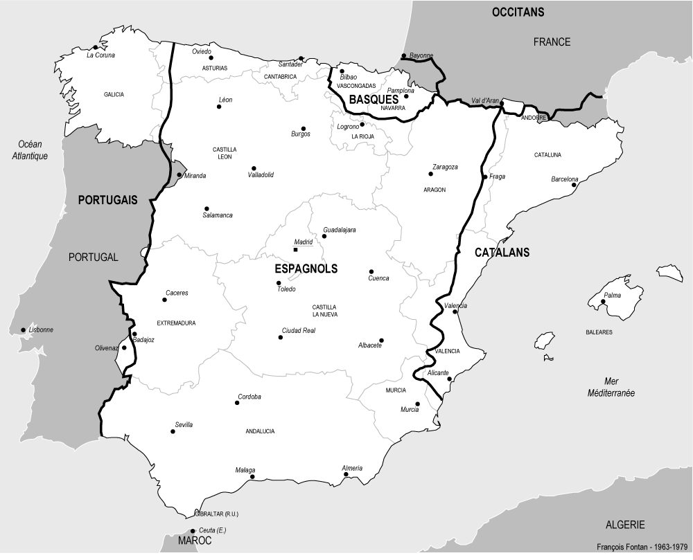 Espagne - Frontières ethno-linguistiques - (François Fontan 1961-1979)