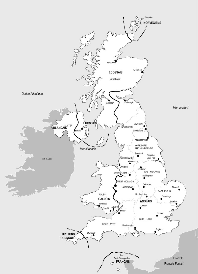 Grande-Bretagne - Frontières ethno-linguistiques - (François Fontan 1961-1979)