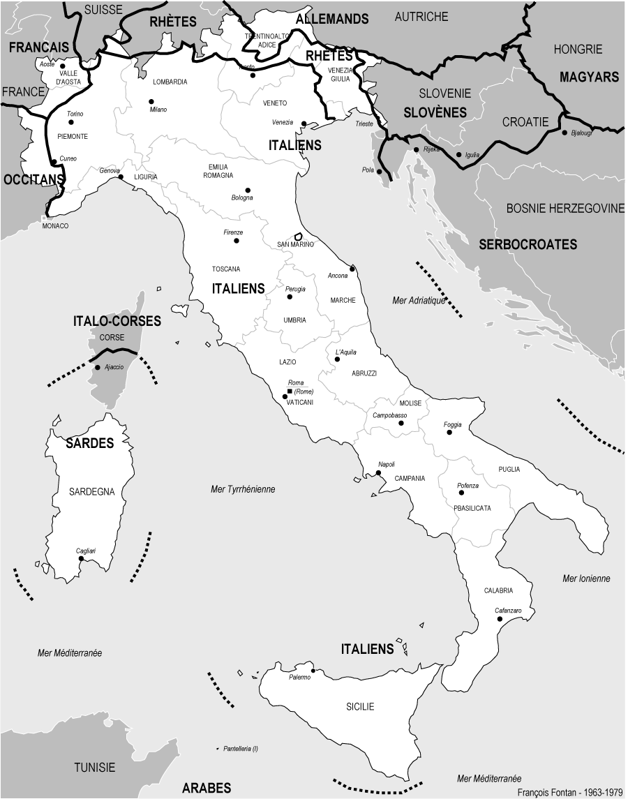 Italie - Frontières ethno-linguistiques - (François Fontan 1961-1979)