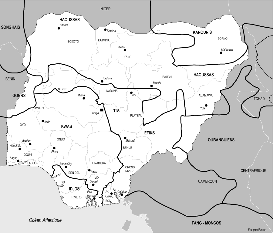 Nigéria - Frontières ethno-linguistiques - (François Fontan 1961-1979)