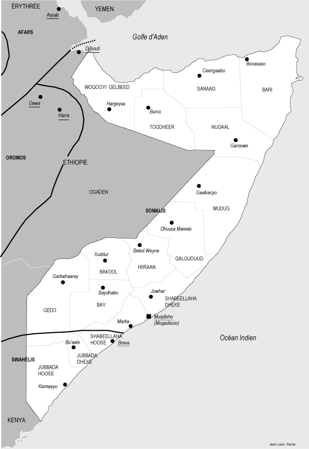 Somalie - Frontières ethno-linguistiques - (Jean-Louis Veyrac 1997)