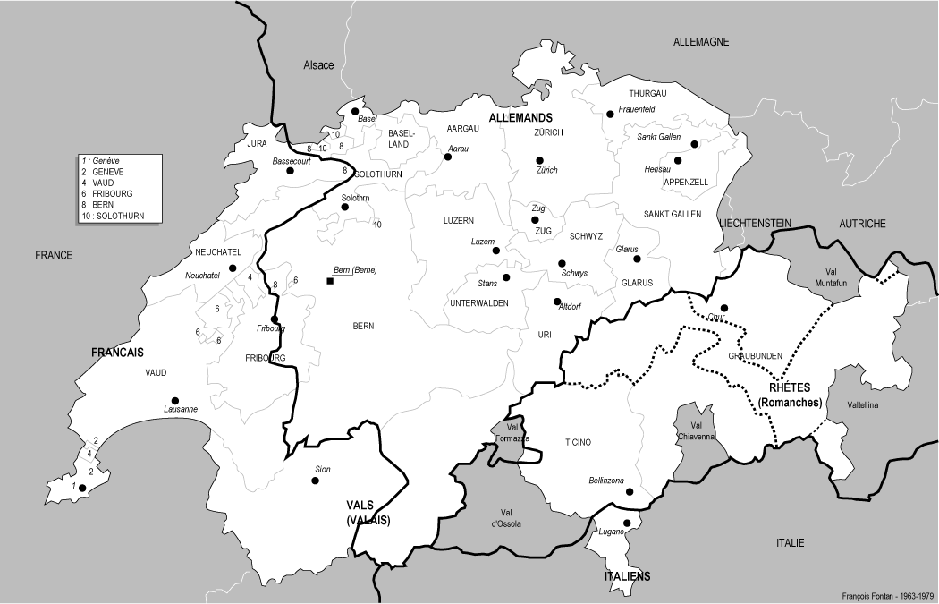 Suisse - Frontières ethno-linguistiques - (François Fontan 1961-1979)
